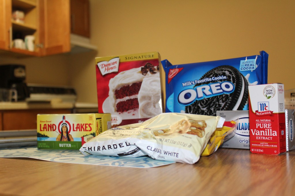 Ingredients for Red Velvet Cookies and Cream Cookies