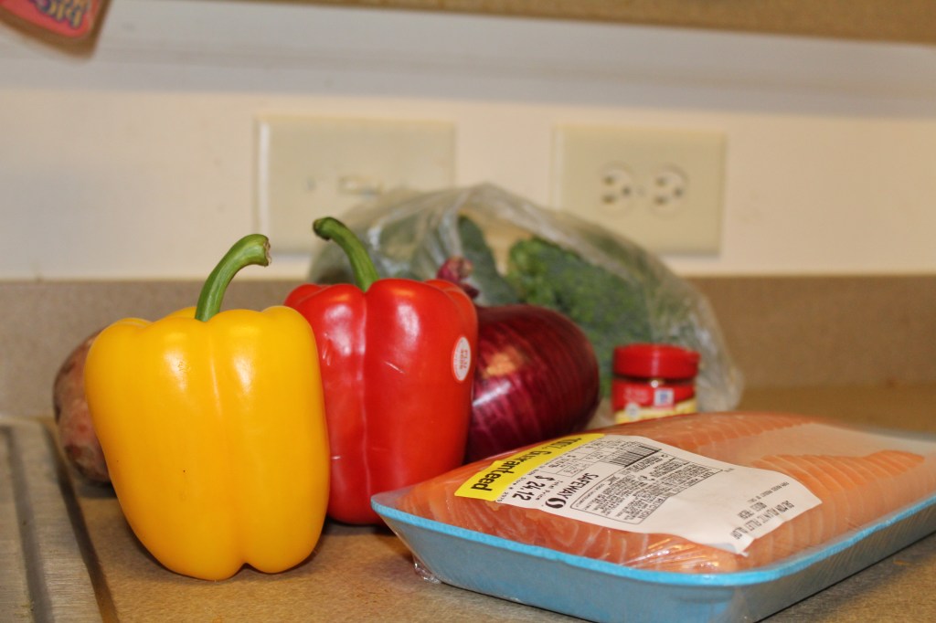 I have never worked with fish before in my life. I haven’t worked with a lot of food honestly. As you all know, I’m new to this. Hence the name Rookie Cooky. The most I know about fish is that they live under water and I like to eat them. Last recipe I cooked with my roommate, Rachel, and she was a fantastic wing man. This time my boyfriend, Reggie, took the time to help me make this delicious meal. Tilapia, haddock, trout, there are many different fish to learn how to cook but salmon has always been my favorite so I figured it’s a good place to start. This time my grocery list was fairly short. I wanted to make Salmon with sweet potato hash, and baked broccoli. Here’s what I picked up: